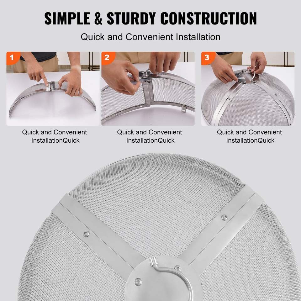 Schermo Antiscintilla in Acciaio Rinforzato da 27 Pollici per Braciere, Coperchio Facile da Aprire per Focolare Esterno, Accessori per Set Caminetto
