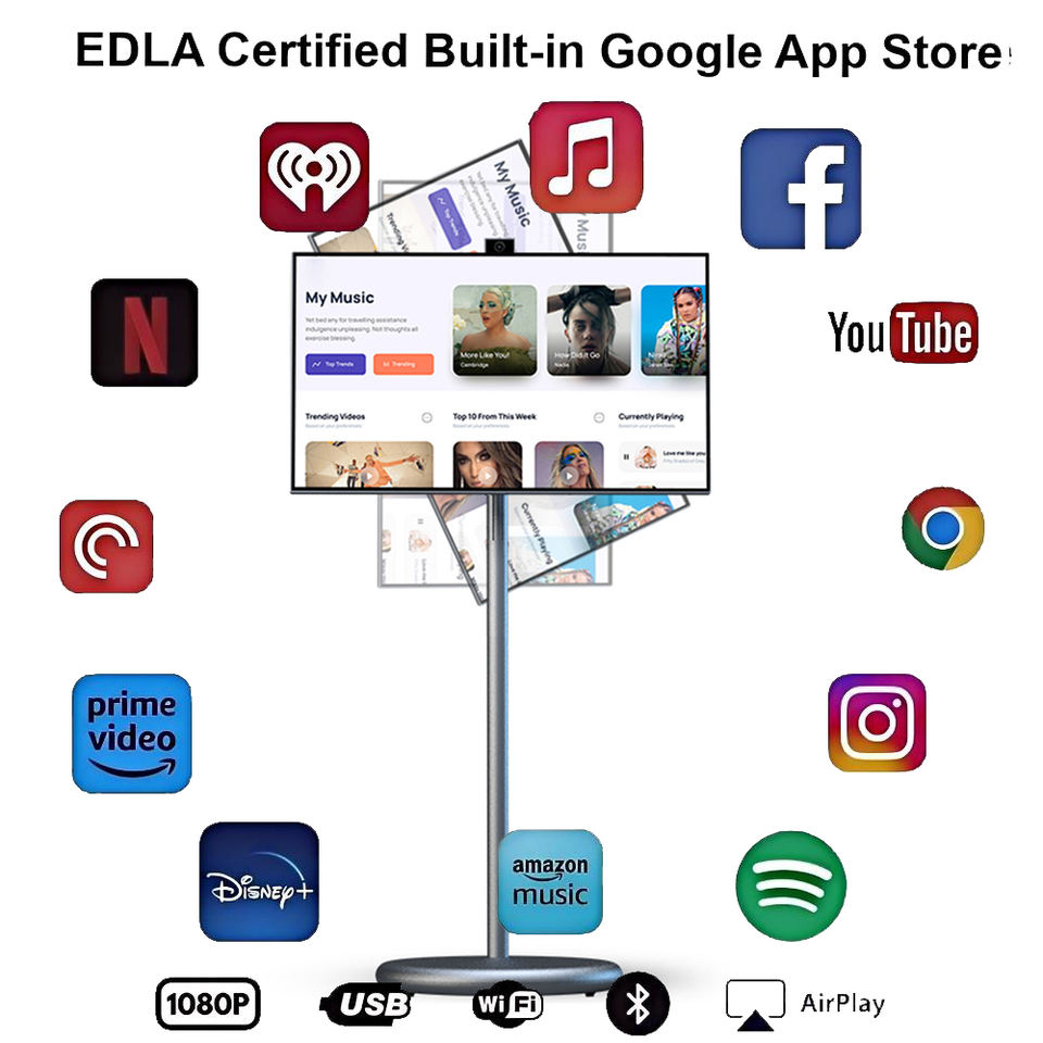 TV Portatile a Batteria da 27 Pollici Monitor LCD per Interni Display Girevole Android 15 Smart TV Touch Screen per Gaming