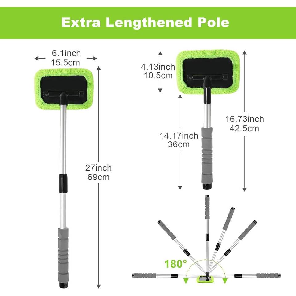 Strumento per la Pulizia del Parabrezza con Manico Estensibile da 27 Pollici, Pulitore per Finestrini Interni Senza Aloni con Cuscinetti in Microfibra Riutilizzabili per Auto