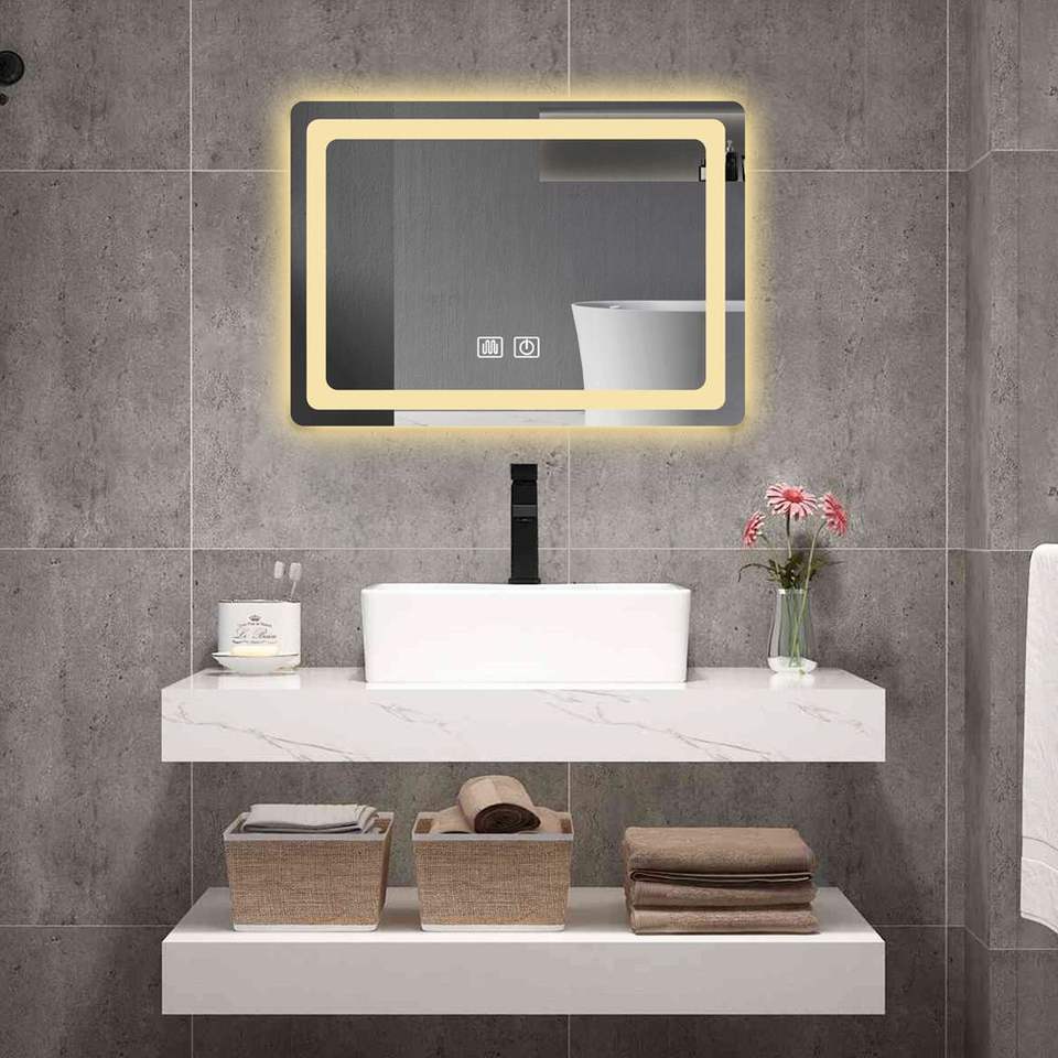 Specchio da Bagno LED Singolo da 27 Pollici, Specchio da Parete in Cristallo Lucidato con Illuminazione Intelligente