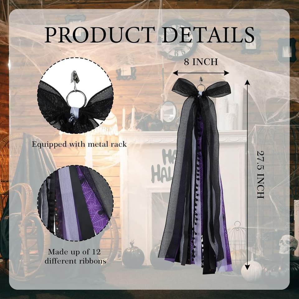 Ghirlanda Gotica di Halloween da 27 Pollici con Nastro e Fiocco, Grande Decorazione da Appendere per Interni ed Esterni, per Feste e Coriandoli