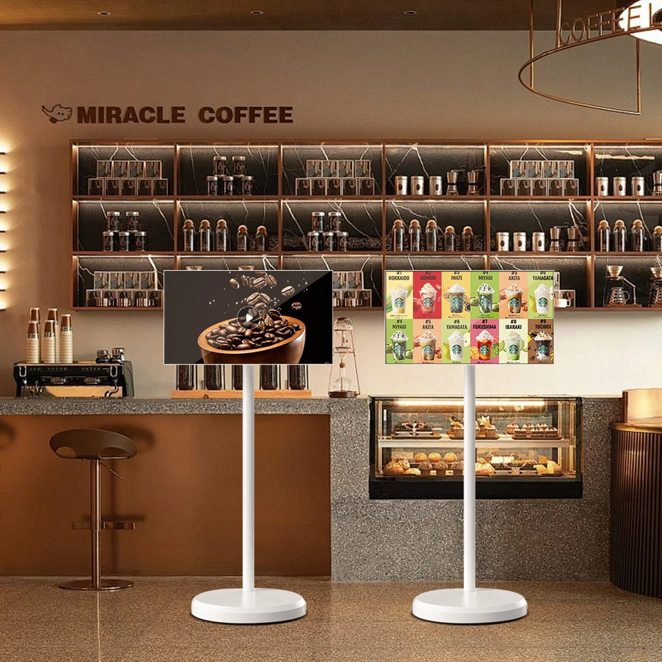 27 pollici Touch Screen mobile Smart Tv Stand seguito da Me Tv batteria alimentato girevole schermo portatile pavimento chiosco