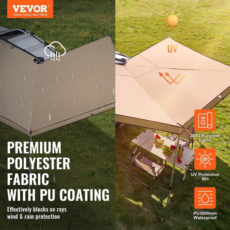 Tenda Laterale Retrattile per Auto a 270 Gradi, Altezza 8,2 cm, con Borsa Impermeabile PU3000mm UV50+, Adatta per Veicoli