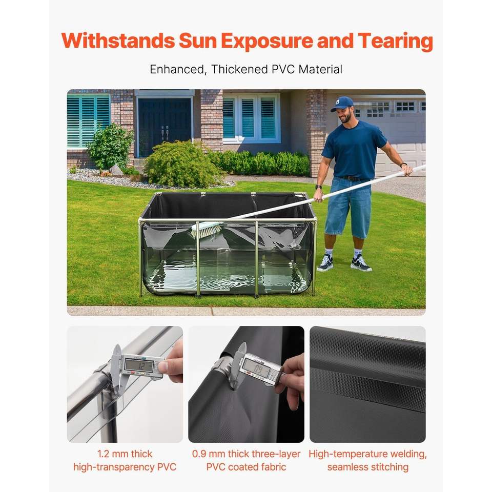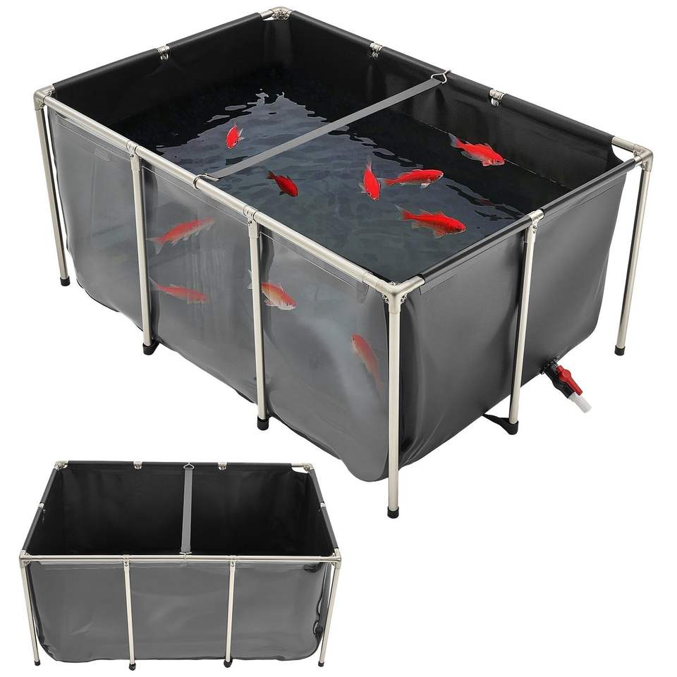 Vasca rettangolare per pesci rossi da 270 galloni, laghetto per Koi in PVC con pannello trasparente, acquario da terra in tela, accessorio in acciaio inossidabile per pesci rossi