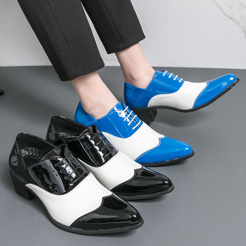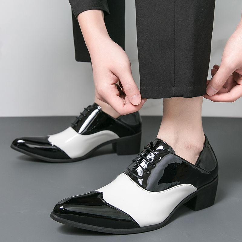 2733 Nuove Scarpe Eleganti da Uomo in Pelle con Punta Affusolata e Lacci, Misura Grande, Tacco Alto, per Cerimonie e Matrimoni