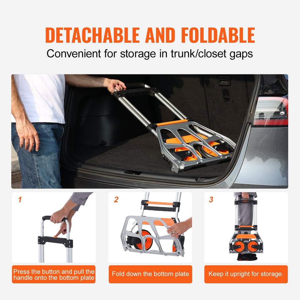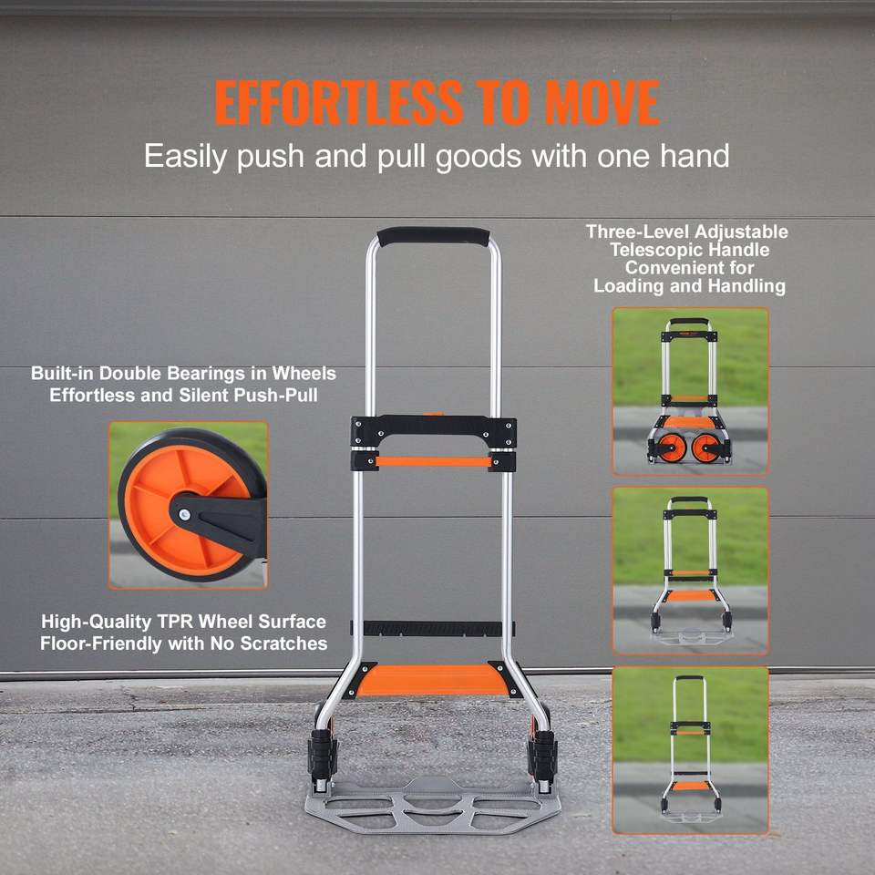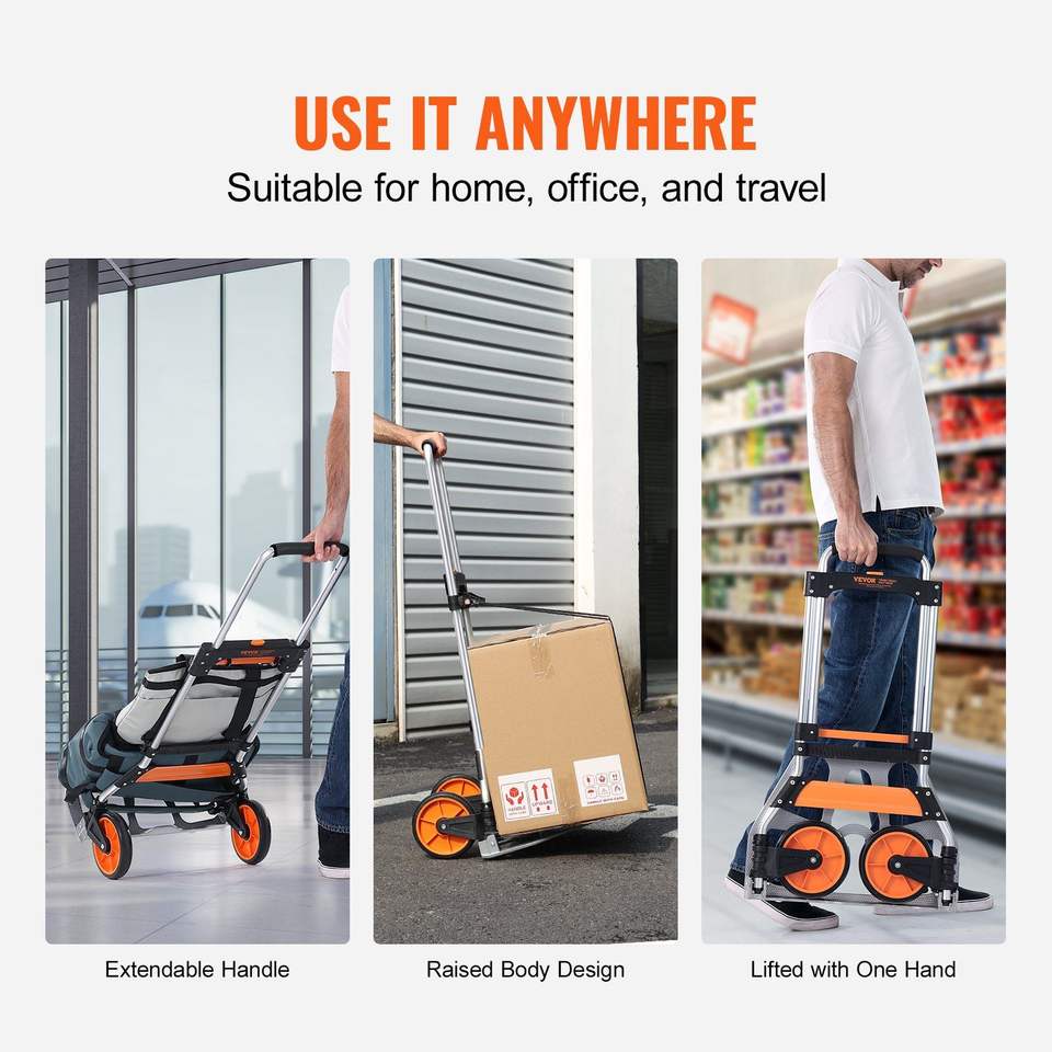 Carrello Pieghevole in Alluminio con Capacità di Carico di 125 kg, Convertibile e Portatile con Manico Telescopico
