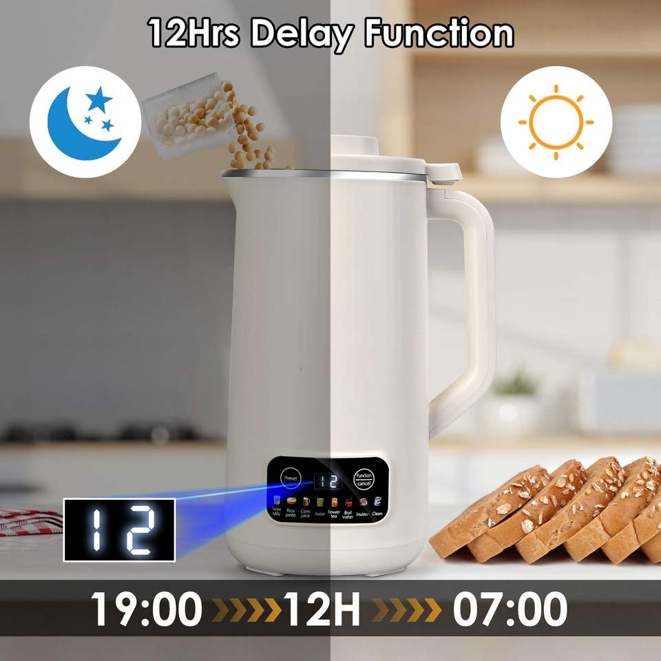 Macchina per Latte Vegetale Autopulente da 27OZ con Funzione di Ritardo 12 Ore e Mantenimento Calore, Macchina Automatica per Latte di Soia Fatto in Casa