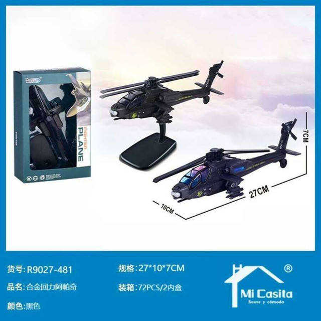 27cm Diecast Alloy Pull-Back Apache RC Helicopter Toy Model Electric Flying with USB Controller Battery Bulk 72pcs Per Box