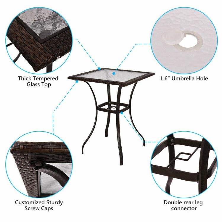 28.5 Inch Outdoor Patio Square Glass Top Table with Rattan Edging Stylish Furniture for Outdoor Entertaining