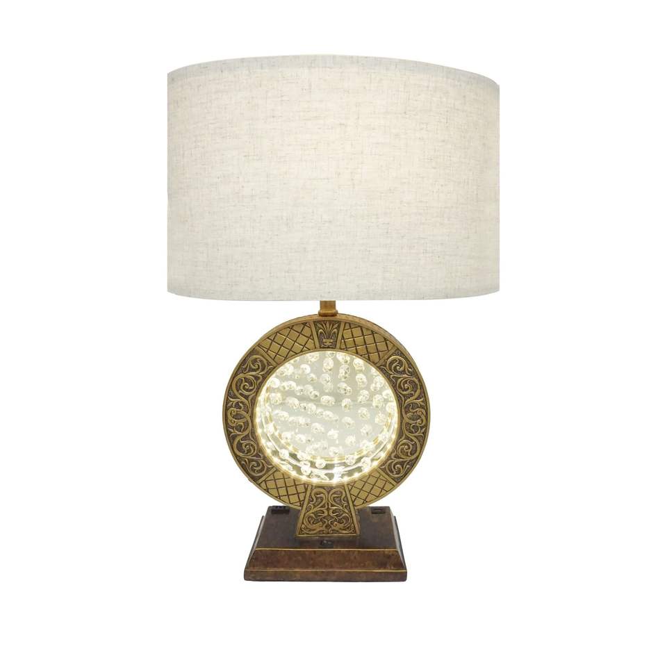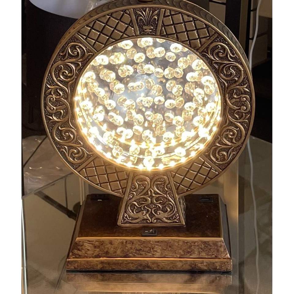 Lampada da Tavolo Antica in Poliresina da 28 Pollici con Decorazione in Cristallo Fluttuante al Centro