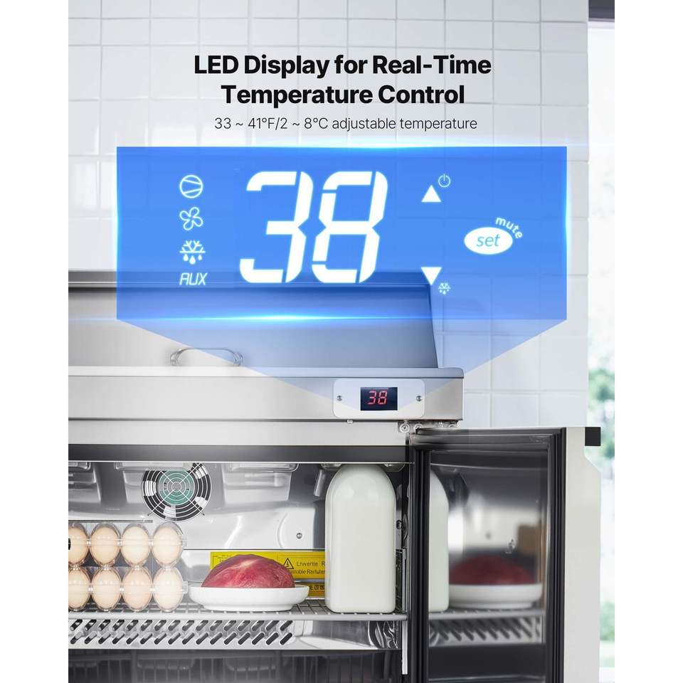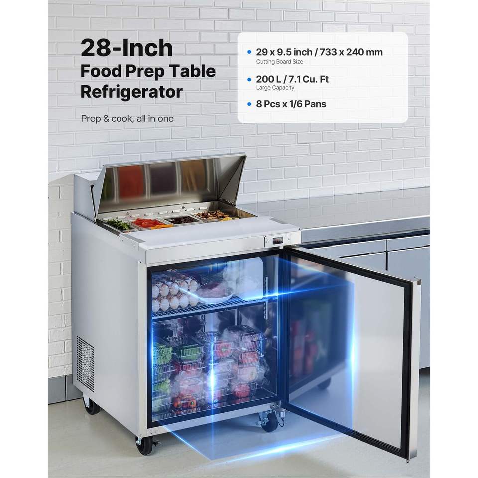 Frigorifero Commerciale da Cucina 28 Pollici 7.1 Cu. Ft. Tavolo Refrigerato per Preparazione Sandwich con Piano di Lavoro Mega a 8 Scomparti per Preparazione Alimenti