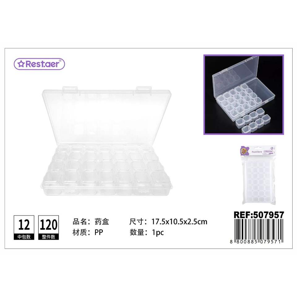 28-Compartment PP Plastic Pillbox 17.5*10.5*2.5 cm Organizer for Medicine Storage