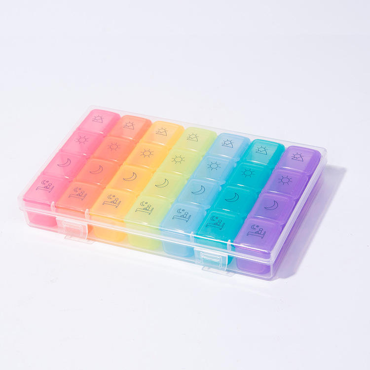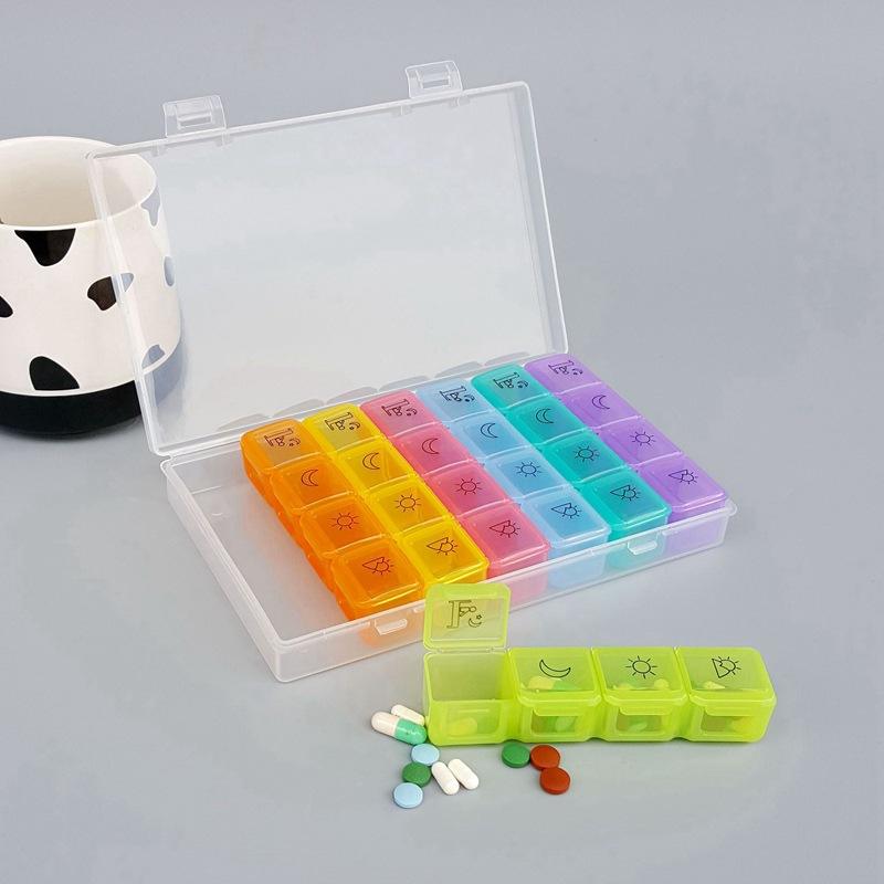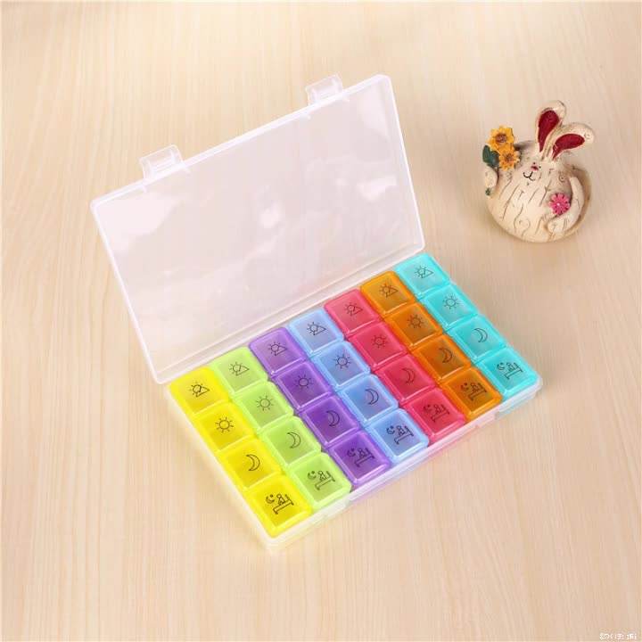 Portapillole in Plastica con 28 Scomparti, Organizzatore Settimanale per 7 Giorni, Contenitore Portatile da Viaggio di Grande Capacità