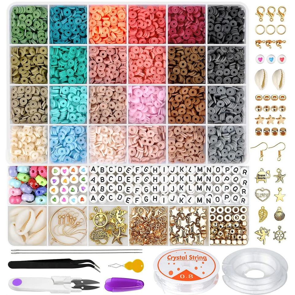 Kit per la creazione di gioielli fai da te a 28 Grid in argilla morbida e morbida con lettere popolari accessori per bracciali con perline Lucite in plastica acrilica