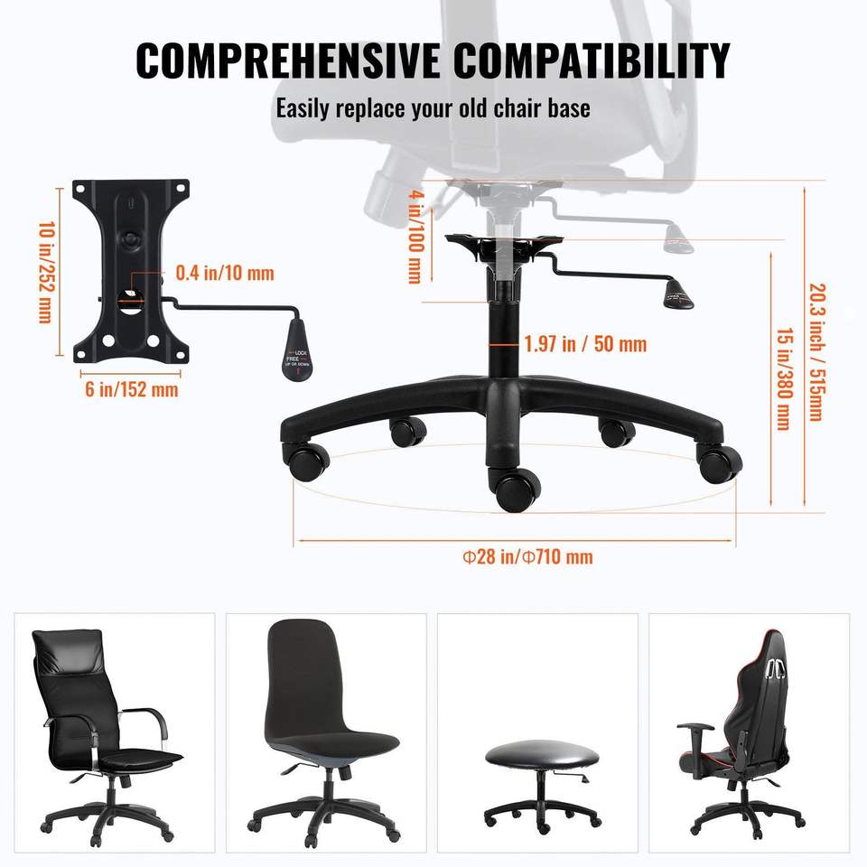 Base di Ricambio Universale per Sedia da Ufficio 28 Pollici, Carico Statico 2500 Libbre, Parte 5 Caste per Sgabello da Scrivania Computer