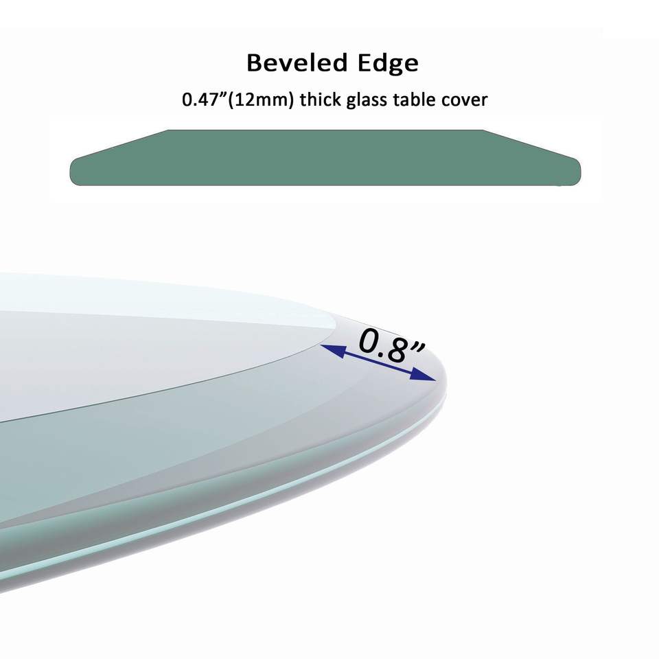 28-Inch Round Tempered Glass Table Top Clear 1/2-Inch Thick Beveled Polished Edge for Coffee Tables