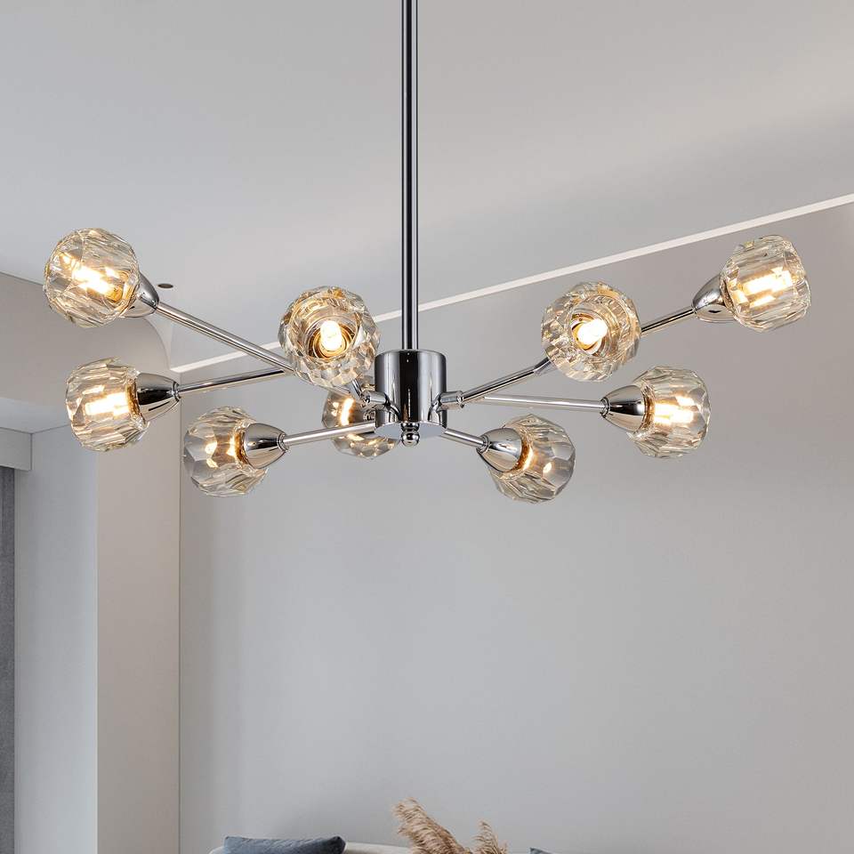 Lampadario Moderno in Cristallo da 28 Pollici con 9 Luci, Finitura Cromata per Soggiorno, Camera da Letto, Sala da Pranzo, Cucina, Illuminazione a Sospensione