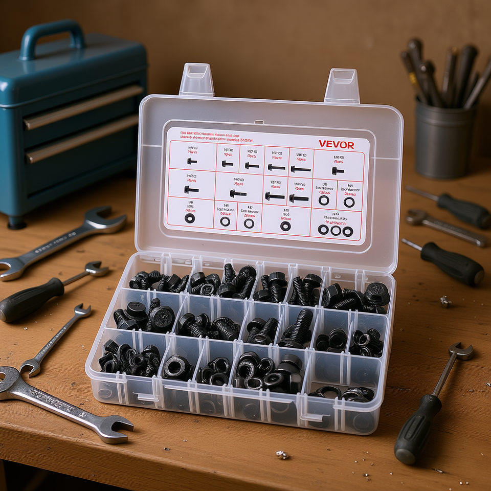 Kit Assortito di Bulloni e Dadi Metrici M6 M8 M10 in Acciaio Legato Classe 8.8, Fissaggi a Testa Esagonale con Ossido Nero, 280 Pezzi