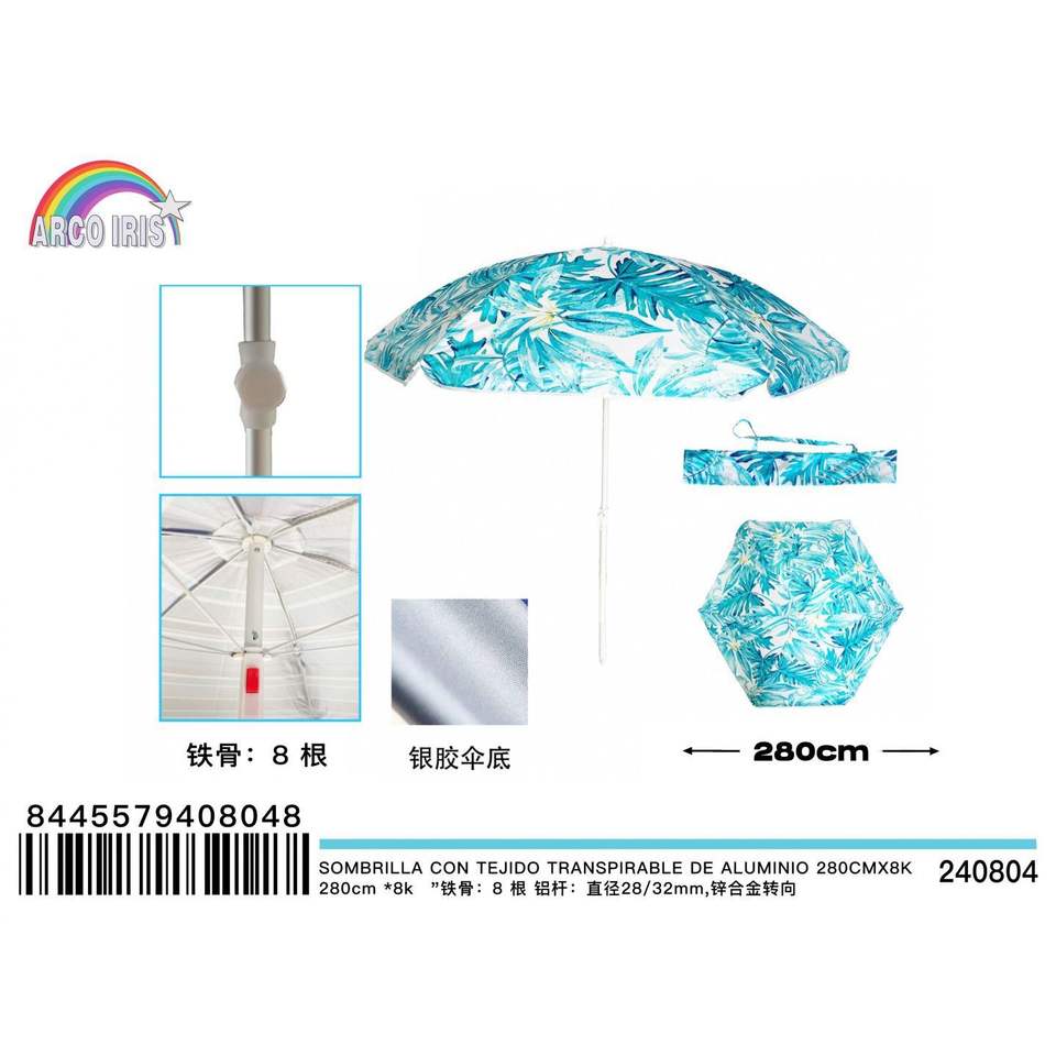 Parasole da giardino da 280 cm con Patio in tessuto traspirante in alluminio e Base ombrellone 3m raggi per cortile e spiaggia