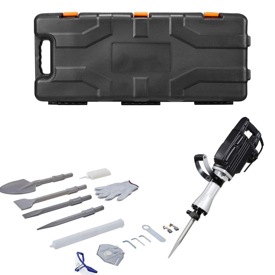 2800 W Powerful Electric Jackhammer 1200 BPM Concrete Breaker 3 Chisels Clay Spade Carrying Case Demolition Drill