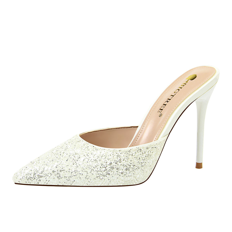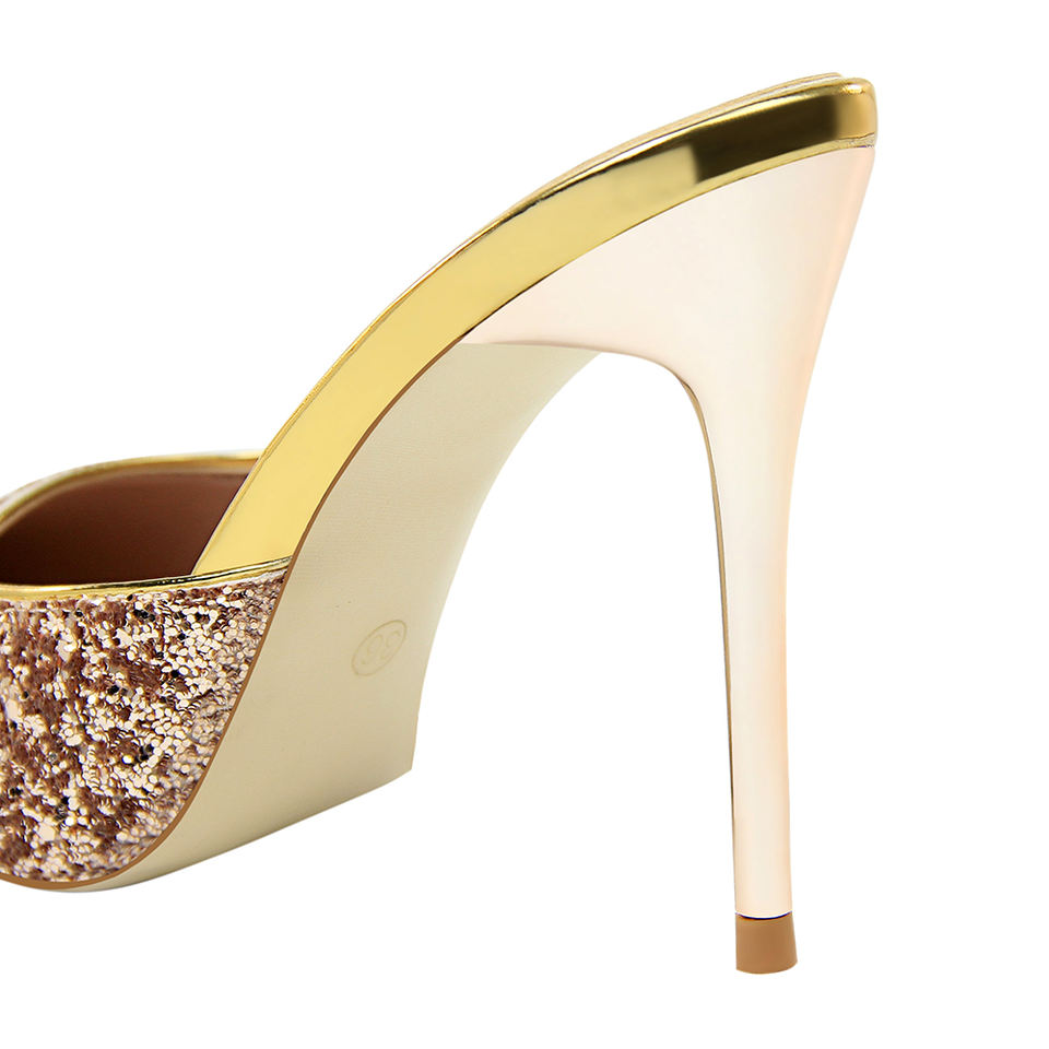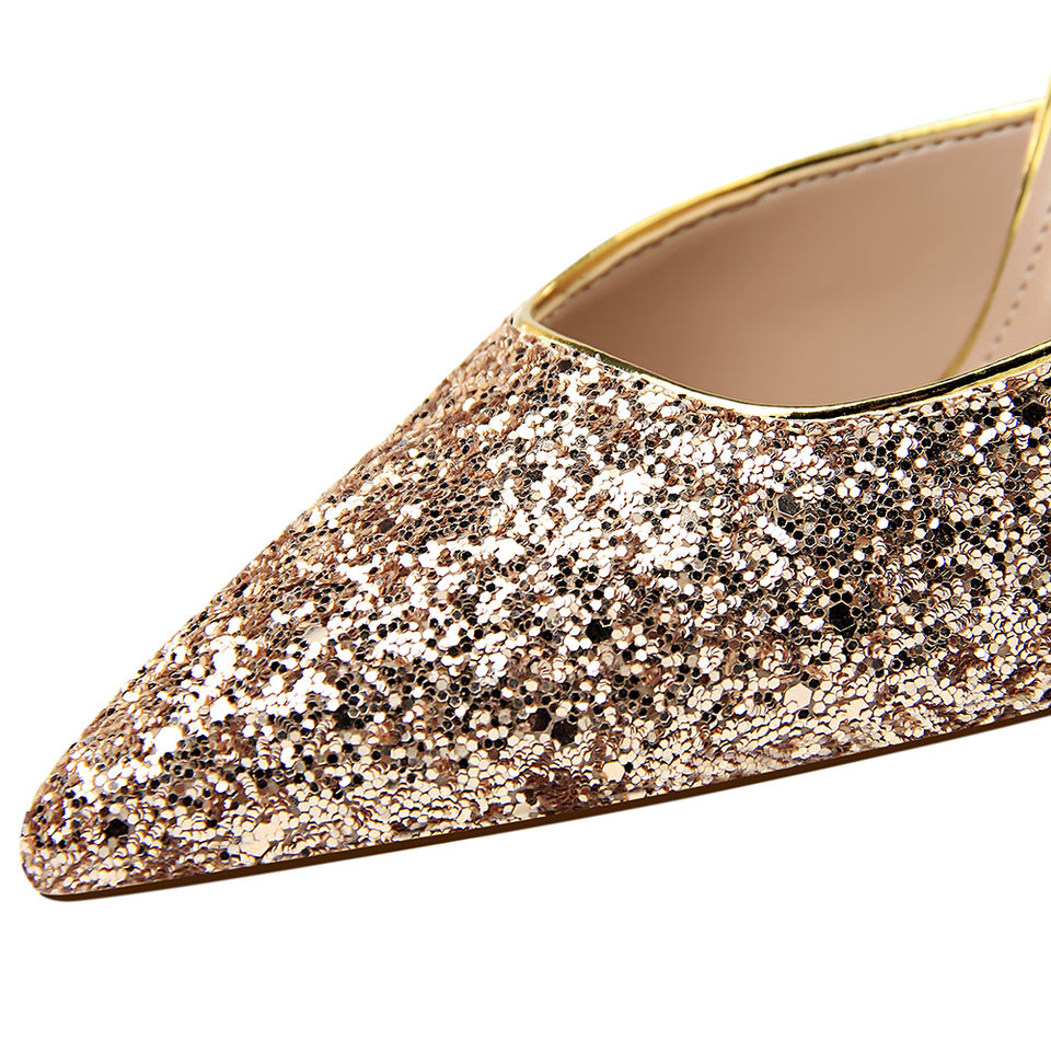 283-12 di Modo semplice metallo con tacco a spillo tacco alto bocca superficiale sottolineato paillettes baotou pantofole sandali femminili