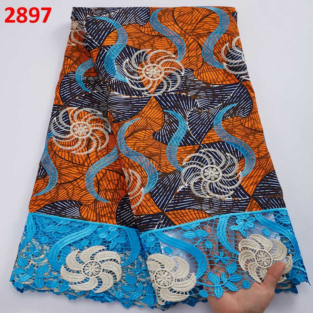 2897 High Quality Ankara Print Embroidered Wax Lace Hot Sale African Ankara Fabric With Stones Embroidery Chemical Wax Fabric