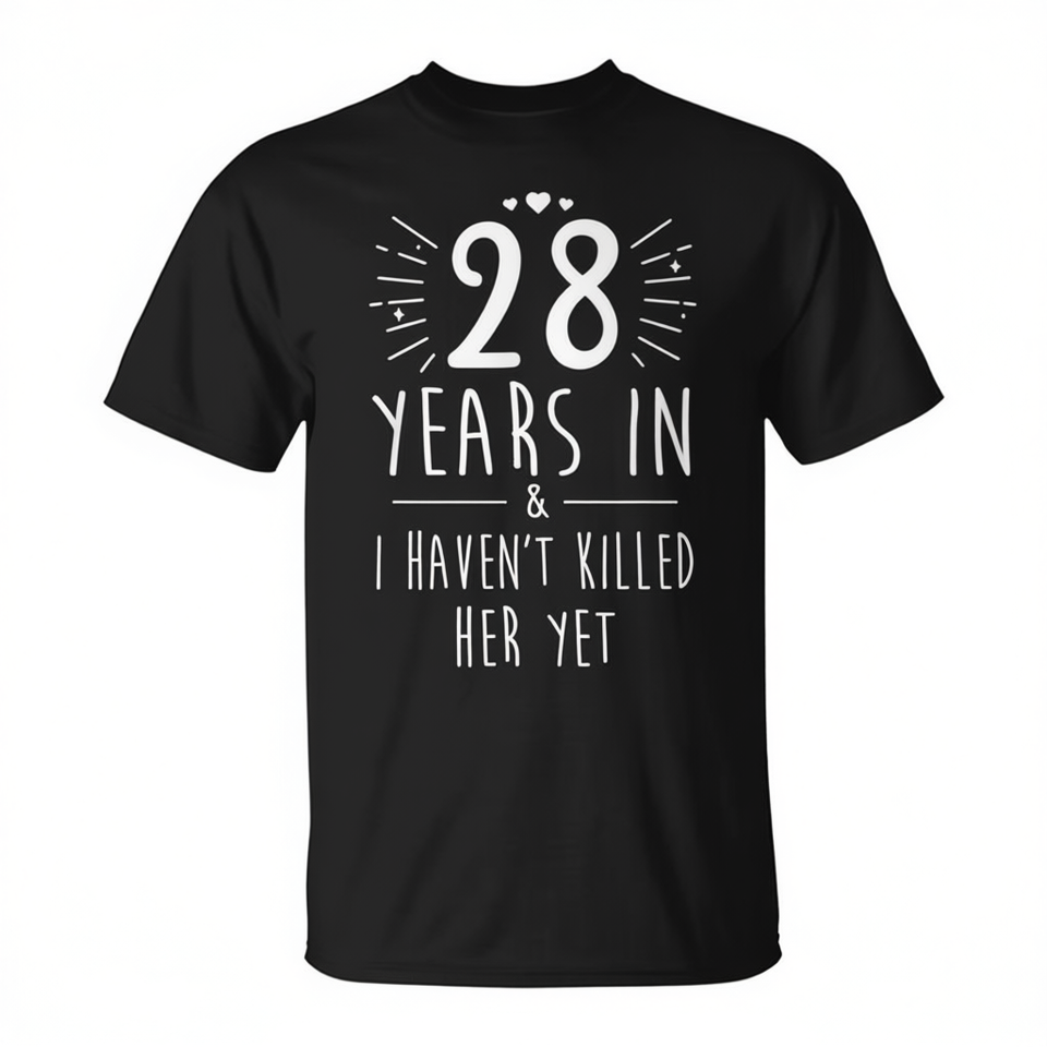 T-shirt promozionale personalizzabile per il 28° anniversario di matrimonio, per lui e per il marito, che celebra 28 anni di matrimonio