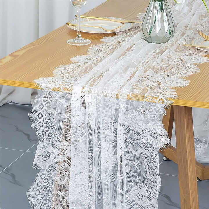 Runner da Tavola in Pizzo Bianco 29,5 X 118 Pollici, Decorazione Rustica Boho per Matrimoni, Addii al Nubilato, Cene e Feste