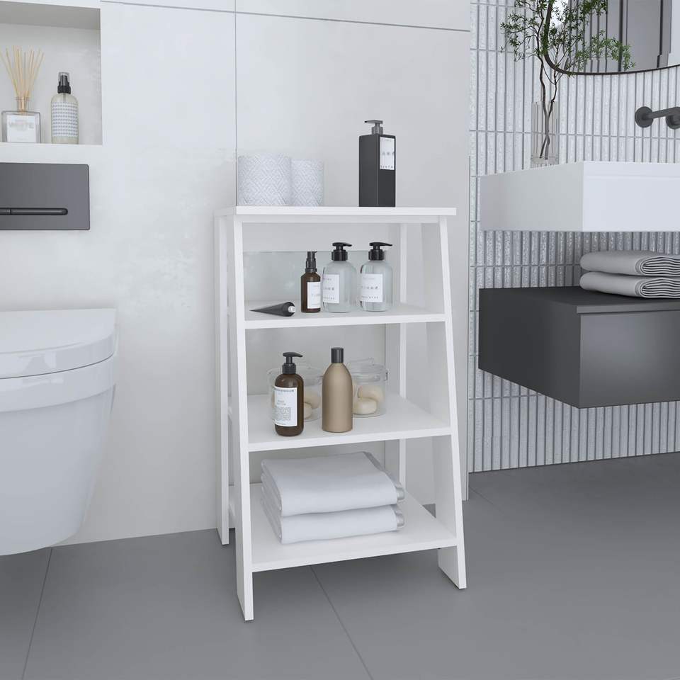 Mobiletto in Lino da 75,4 cm (29,7 pollici) con Quattro Ripiani Verticali Bianchi per Bagno