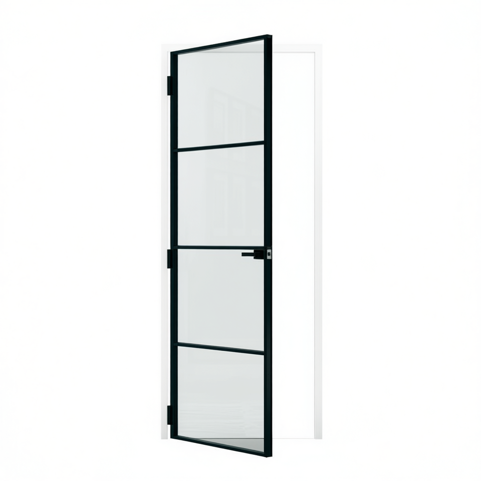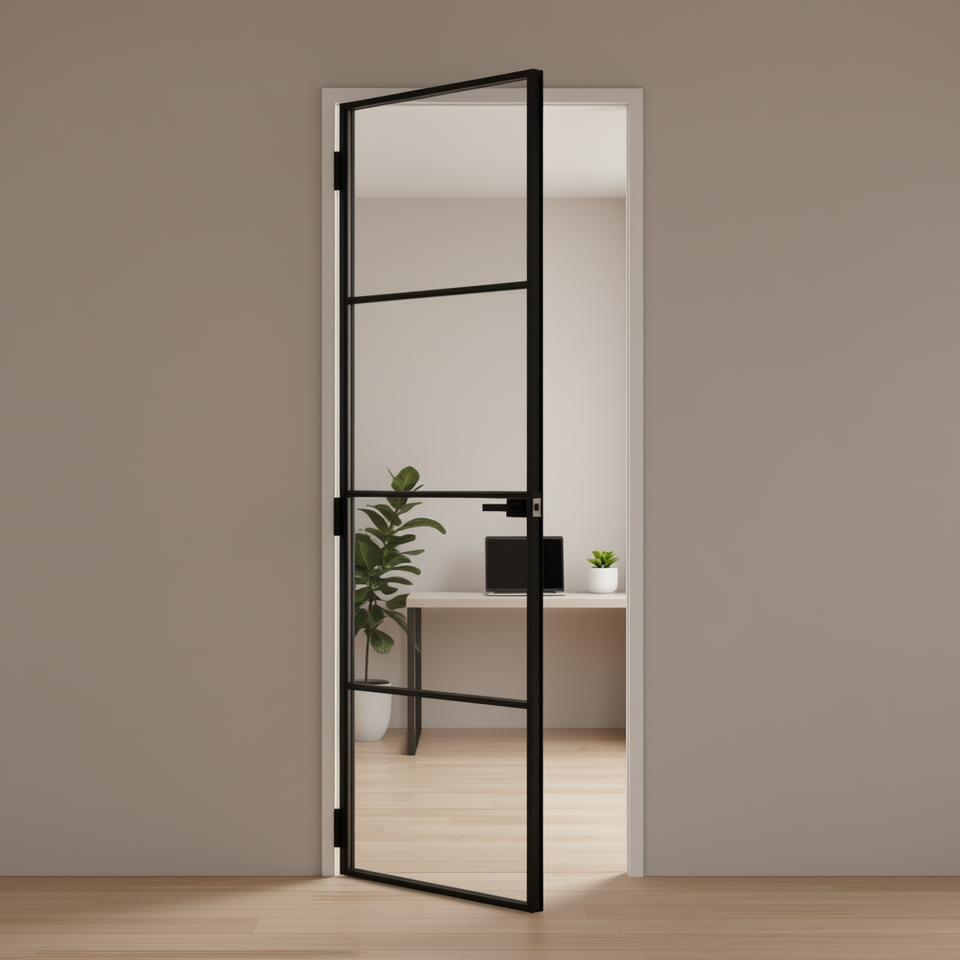 Black Interior Slim Slab Door Tempered Glass Aluminum 29.9x79.3 Inch Minimalist Design Home Office Use