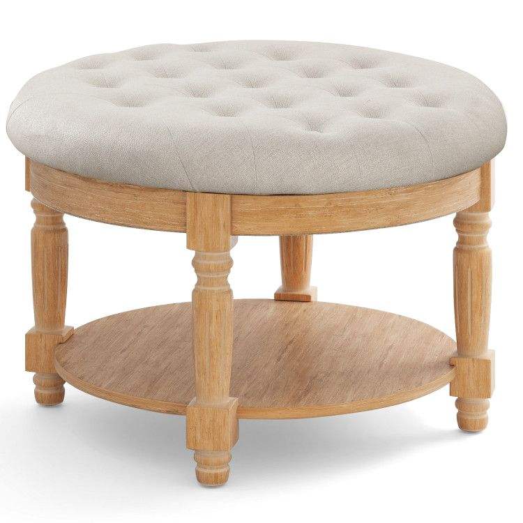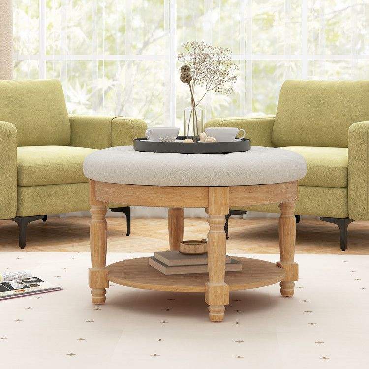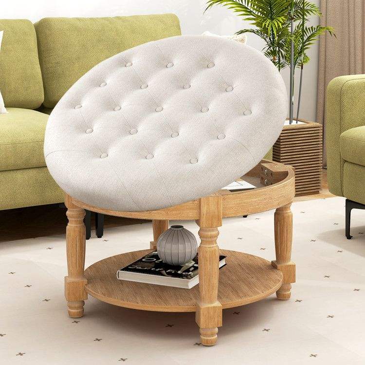 Pouf Ottoman Imbottito a 2 Livelli da 29 Pollici, Tavolino da Caffè Rotondo Grande con Piano Ribaltabile, Sgabelli e Pouf Imbottiti