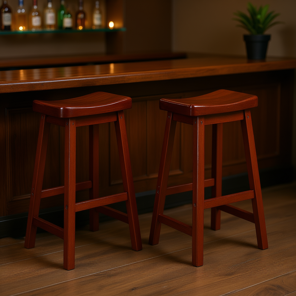Solid Wood Cherry Finish Saddle Seat Bar Stools 29 Inch 2pc Set For Bar Height Dining Furniture