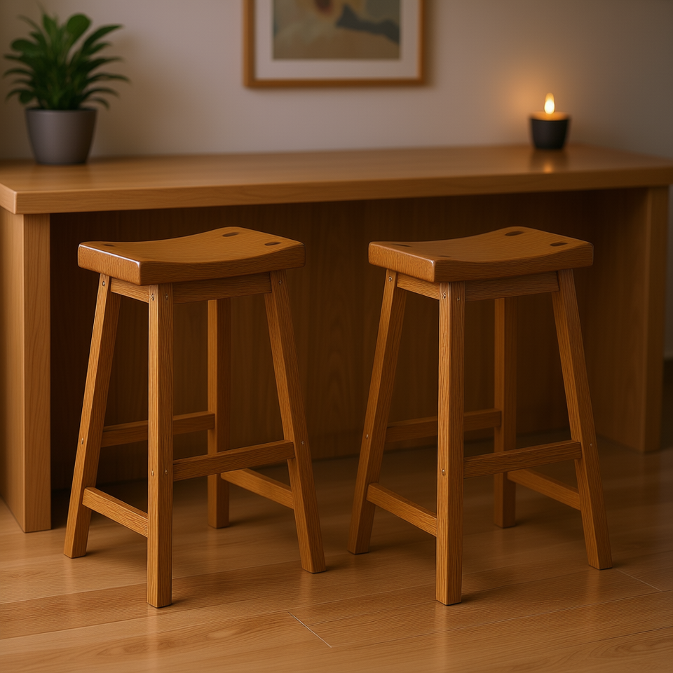 Sgabelli da bar con seduta a sella in legno massello di quercia, altezza 29 pollici, set da 2 pezzi, per bar, casa, arredamento casual per sala da pranzo