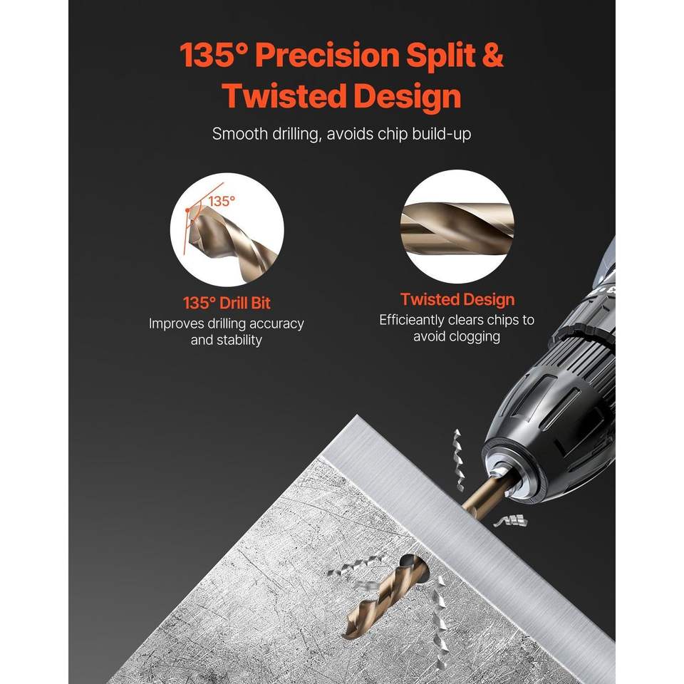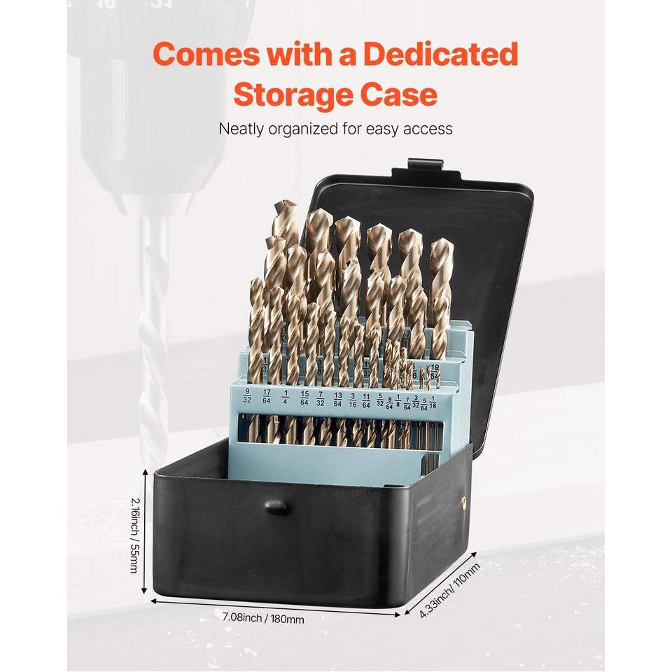 Set di 29 punte da trapano in cobalto M35 in acciaio super rapido, punte multiuso per metallo e acciaio inossidabile con custodia.