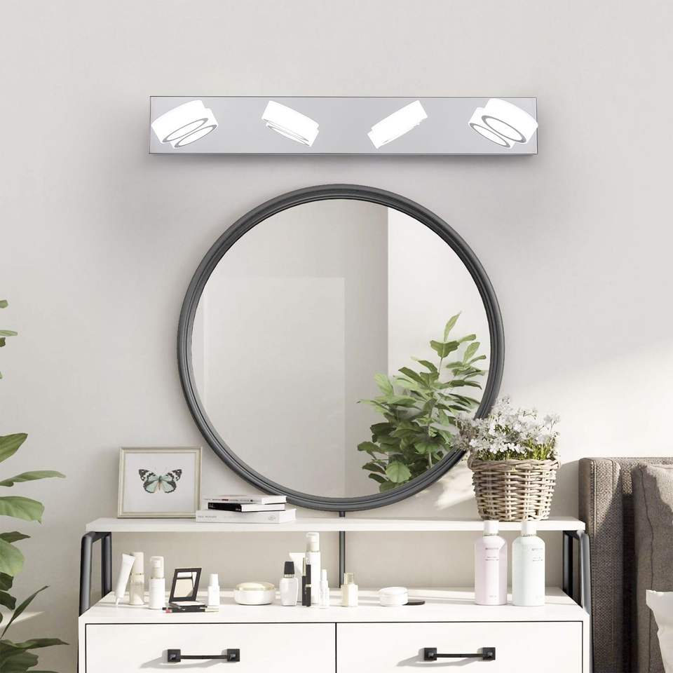 Lampada da Parete LED Cromata Elegante da 29 Pollici, Moderna con 4 Luci per Specchio Bagno e Decorazione Doccia