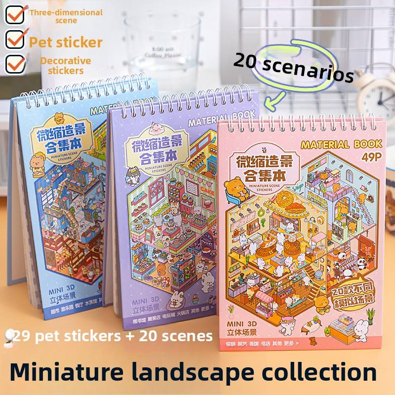 29 adesivi + 20 immagini di scena/confezione adesivo in miniatura libro Sunshine Town 3D Cartoon fai da te decorazione paesaggio adesivo libro