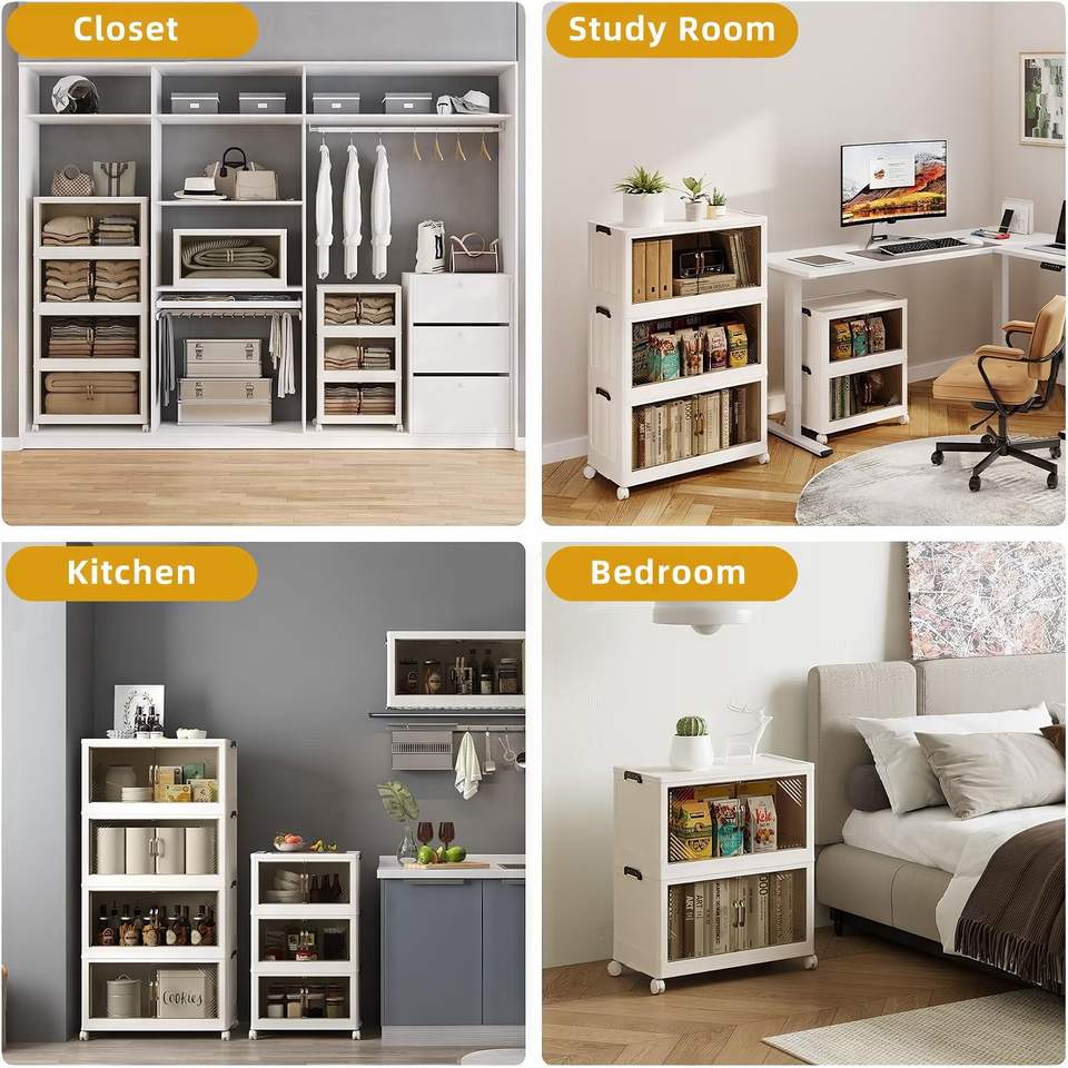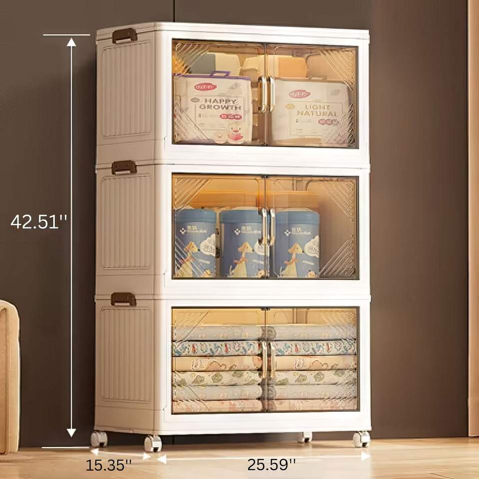 Scatola di Stoccaggio Pieghevole con Porta Trasparente da 25,6 Pollici, 3 Livelli, Grande Capacità, Facile Accesso, Accessorio Salvaspazio per Armadio