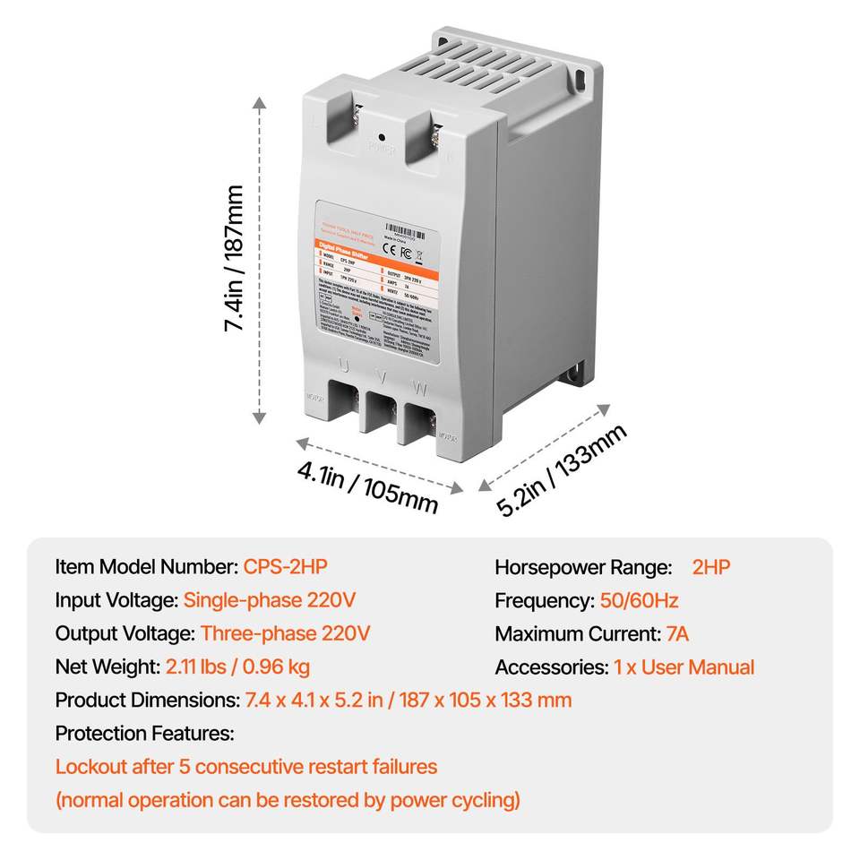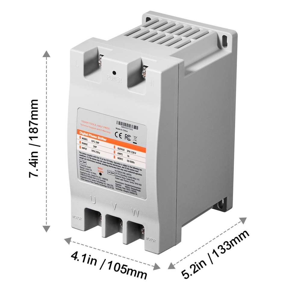Convertitore Monofase a Trifase 2HP 7A 220V, Trasformatore di Fase Digitale per Uso Residenziale, Convertitore Trifase 220V