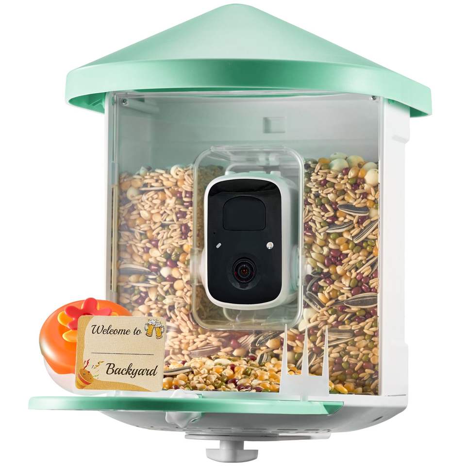 Dispositivo Intelligente per l'Osservazione degli Uccelli con Telecamera Solare 2K HD AI, Identificazione di Oltre 10.000 Specie e Cattura Automatica