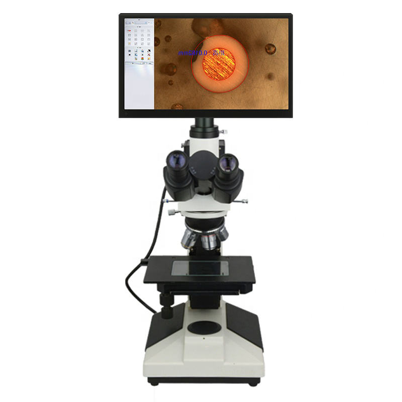 Microscopio Metallurgico con Fotocamera HD Integrata da 2MP, Funzione di Misurazione Trinoculare, Piano di Lavoro 185x140mm, Monitor da 11 Pollici, Autofocus