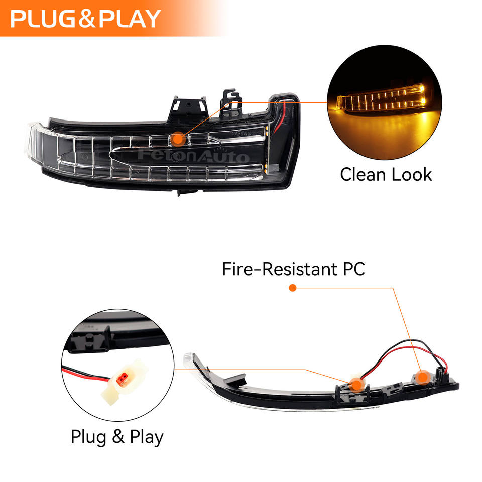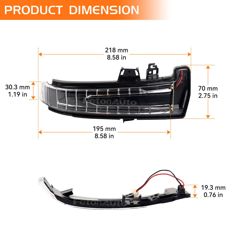 Il pacchetto include:Set di 2 indicatori di direzione a LED per auto (sinistro e destro)