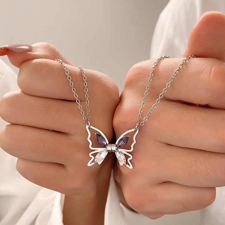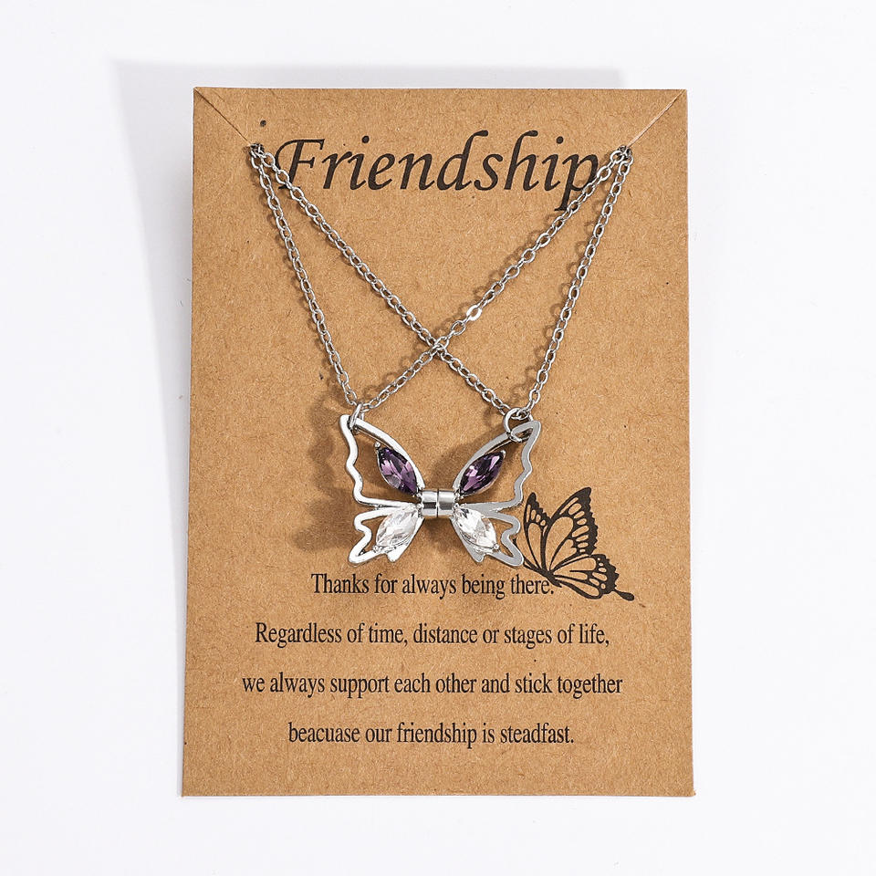2Pcs/Set Lovers Romantic Magnetic Couple Necklace Micro Zircon Hollow Butterfly Pendant Clavicle Chain Friendship Party Jewelry
