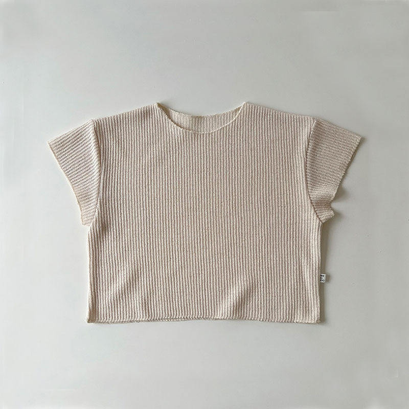 2Pcs Summer Boys Girls Clothing Sets Solid Color Soft Loose Short Sleeve Drawstring Shorts Waffle Outfits Children Knitted Suits
