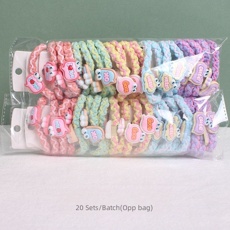 2Piece of Korean Hair Ties for Girls Sweet Animal Braid Children's Hair Tie Thick Rubber Band High Ponytail Hair Ties