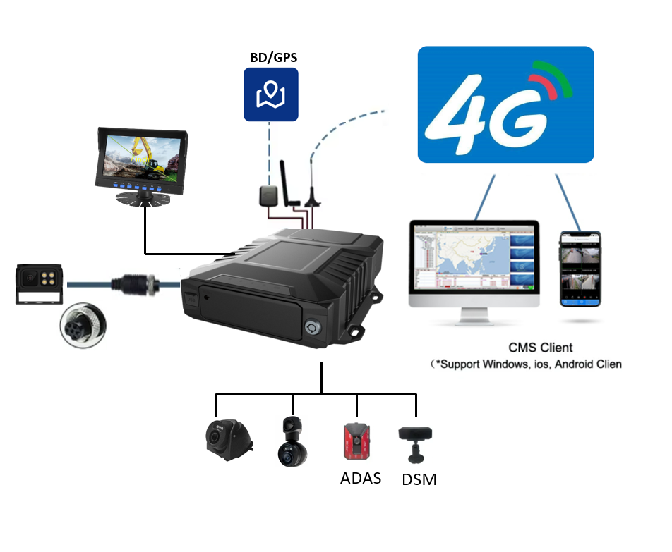 2TB sd HDD auto DVR videoregistratore MDVR sistemi di sicurezza auto scatola nera AI GPS ADAS 1080P 4G MDVR