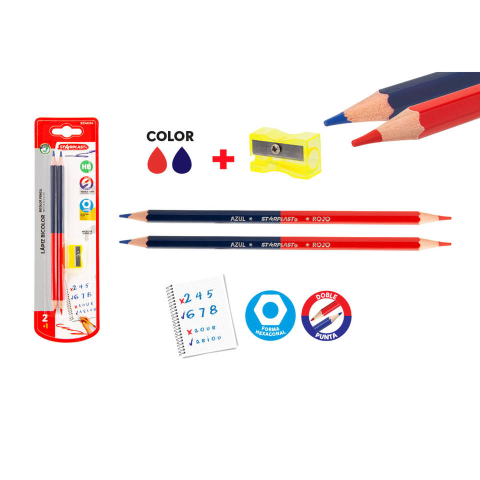 2U Two-Color Sharpener for HB Pencils Hexagonal Plastic and Paper School Usage EN71 Certified