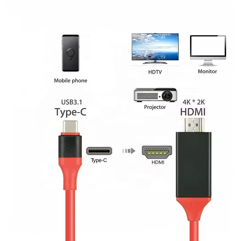 2m 4k usb 3.1 typ c a hdmi convertitore di cavi usb di tipo c a hdmi 4k cavo per HDTV monitor del telefono mobile