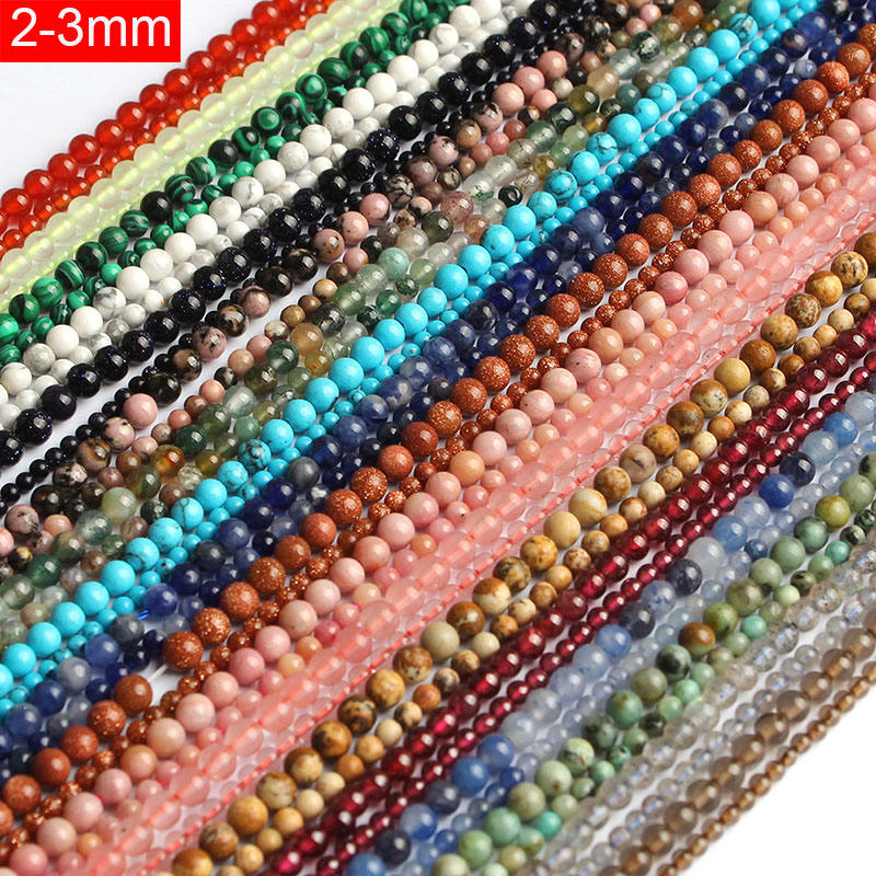Perline Sciolte Rotonde in Pietra Naturale da 2mm 3mm, Cristallo, Gemma, Ametista, Quarzo Rosa, Lapislazzuli, Agata Rossa, Turchese, Granato