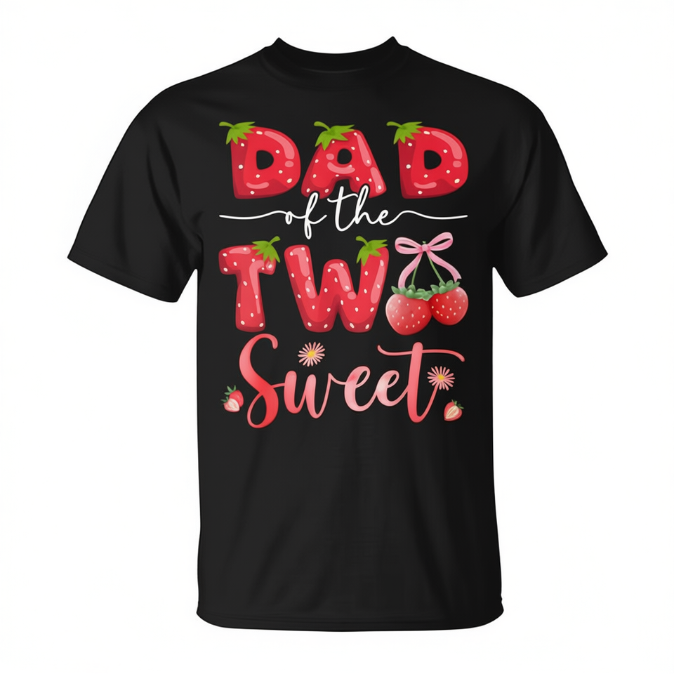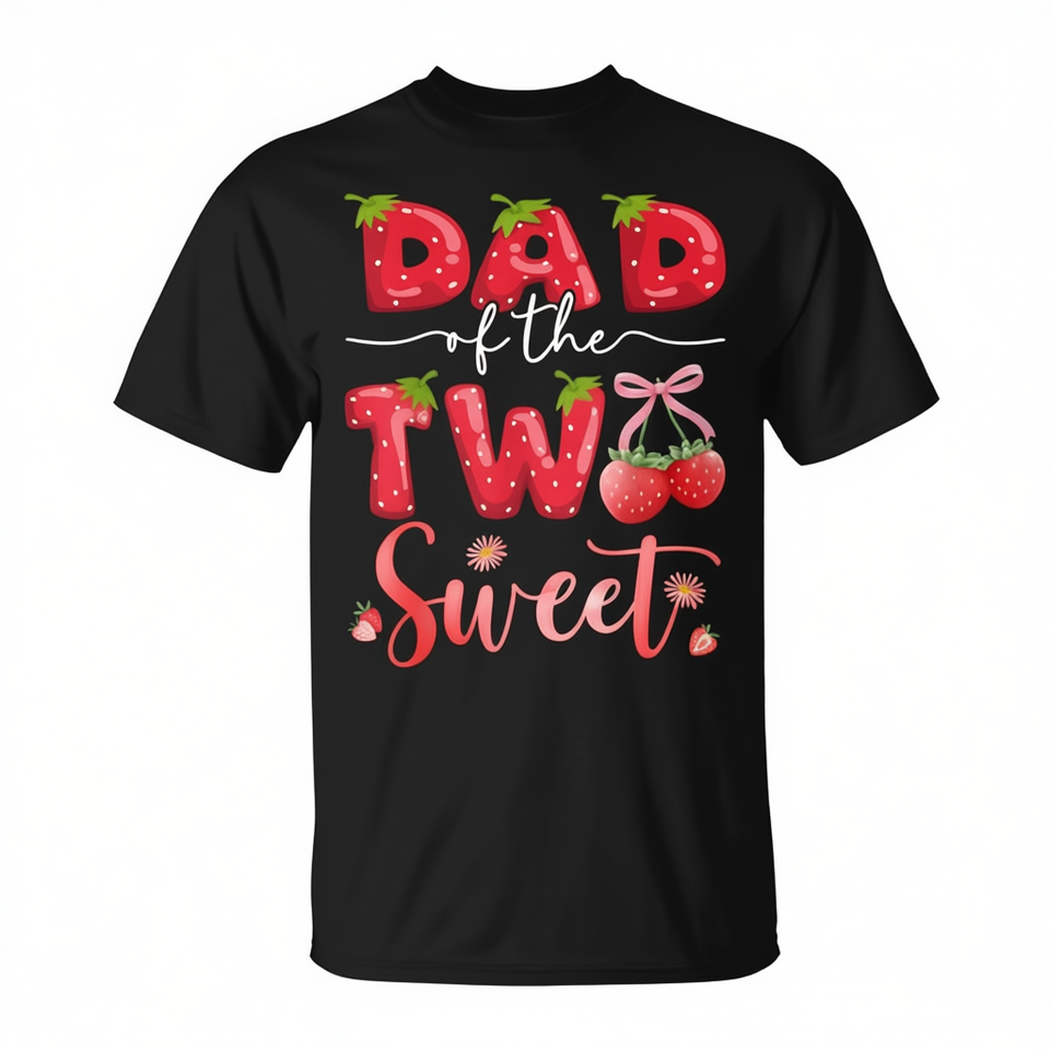 T-shirt per papà della bambina di 2 anni con design a fragola dolce, t-shirt promozionale per occasioni speciali