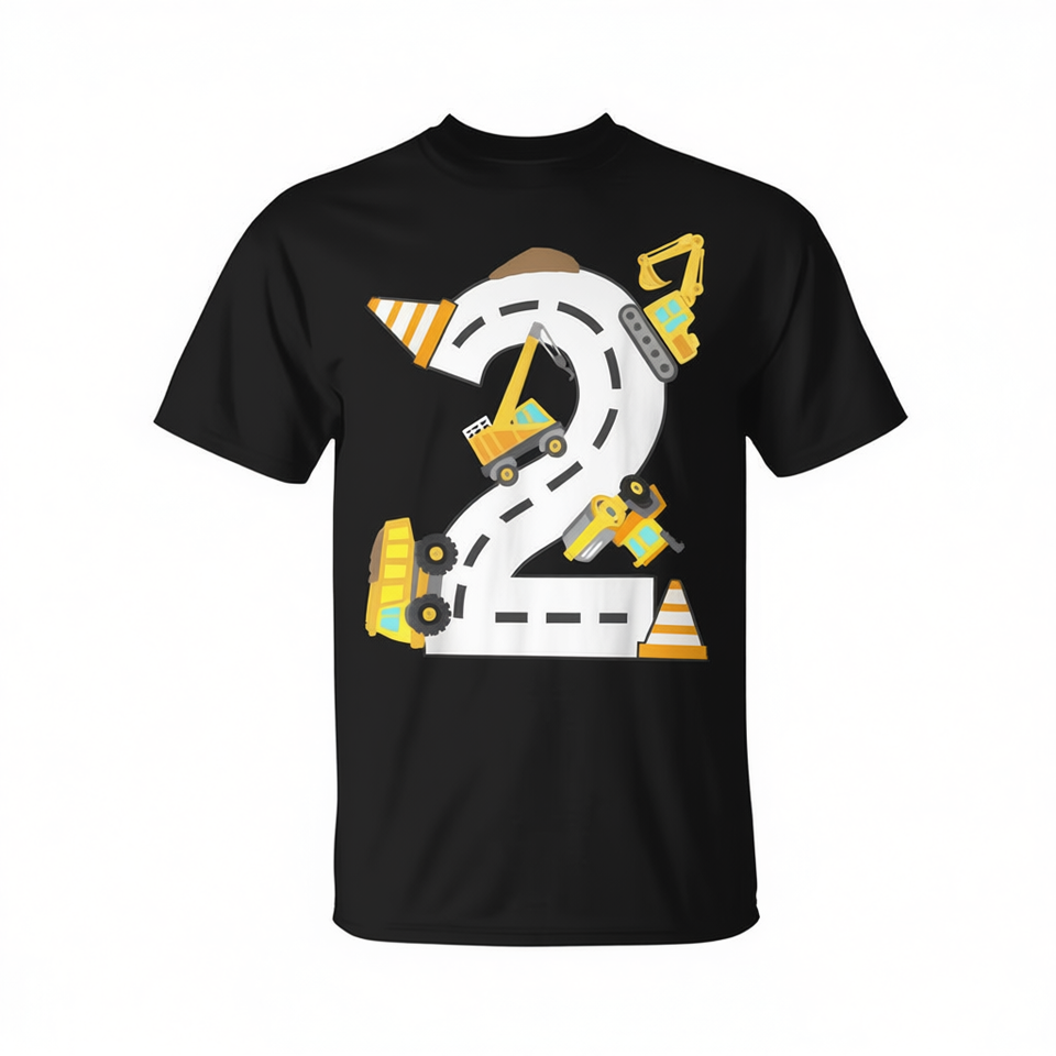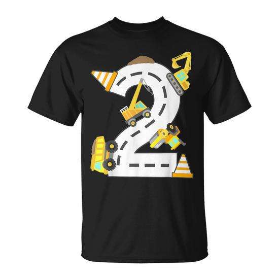 Maglietta per il secondo compleanno a tema costruzioni per ragazzi di 2 anni con design di escavatore